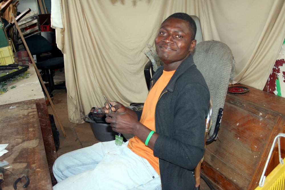 Our last stop was the real highlight for me, as I was not expecting to find an organisation like Deaf Hands @ Work (DHWSA) in Masi. Finding work is hard for most people, but finding work for people with disabilities is near impossible. Charles Nyakurwa grew up with his brother Peter, who has a hearing impairment. He now runs DHWSA, an organisation that empowers deaf people by providing training and creating employment. Peter now makes the most beautiful chandeliers from recycled glass.