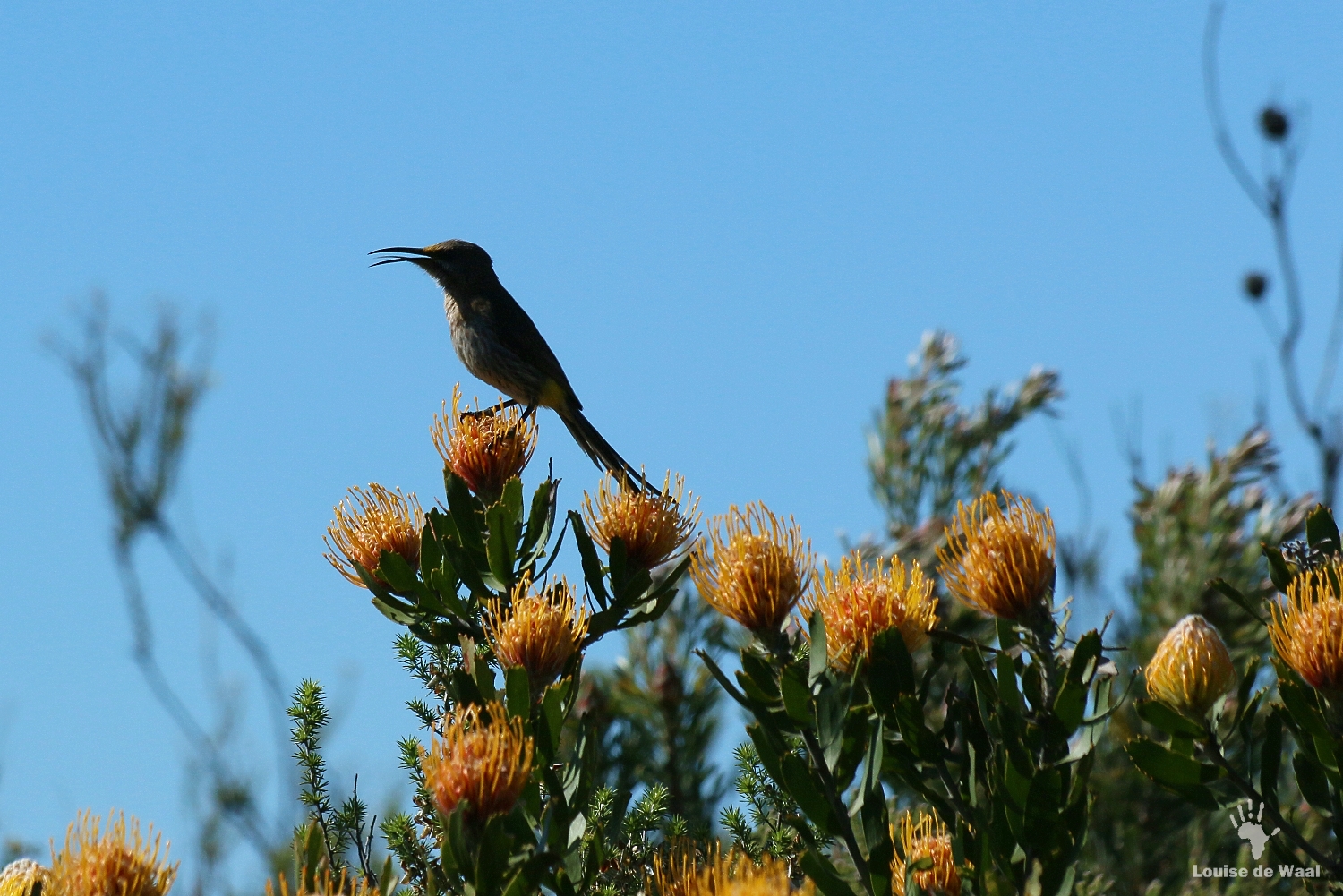 Oukraal Sugar bird on pincushions Posted on March 18, 2016 by Dr Louise de Waal Leave a comment Previous Next Return to Oukraal Hideaway Perfection, Gamkaberg