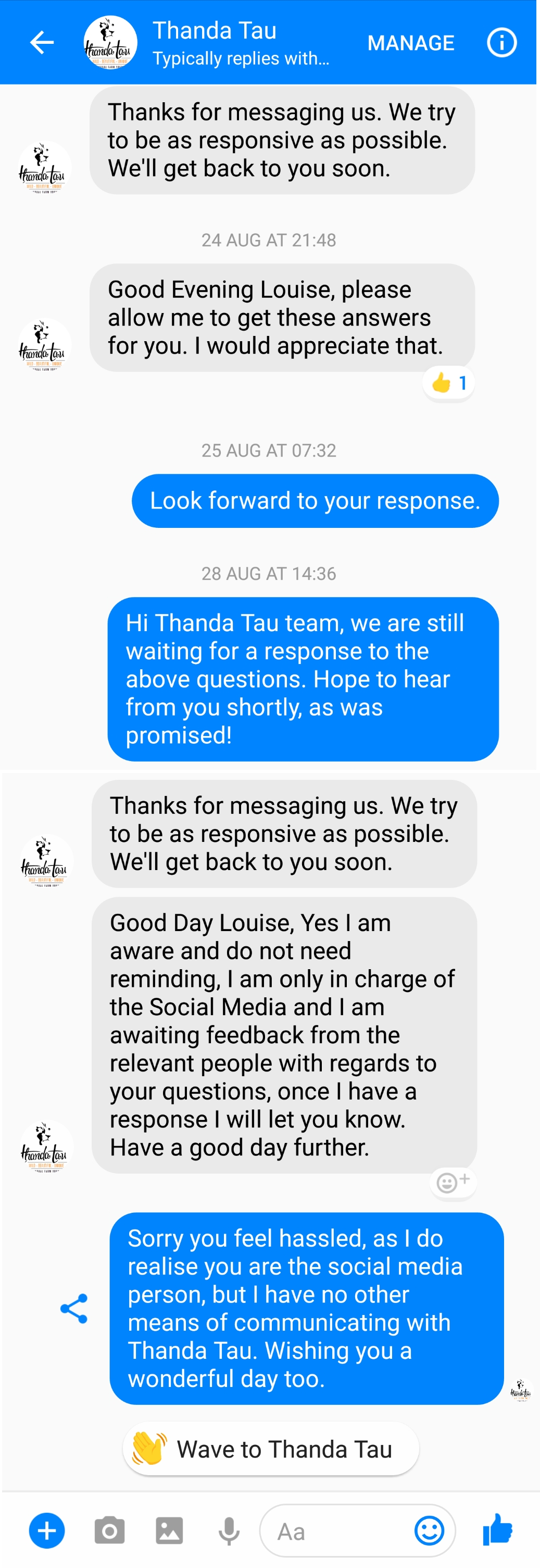 Thanda Tau DM communication 2 Posted on December 26, 2017 by Dr Louise de Waal Leave a comment Previous Next Return to From stony silence to anger – the response to online critical voices